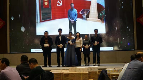 董事長(zhǎng)楊金棟為制作管理團(tuán)隊(duì)頒發(fā)年度績(jī)效獎(jiǎng)